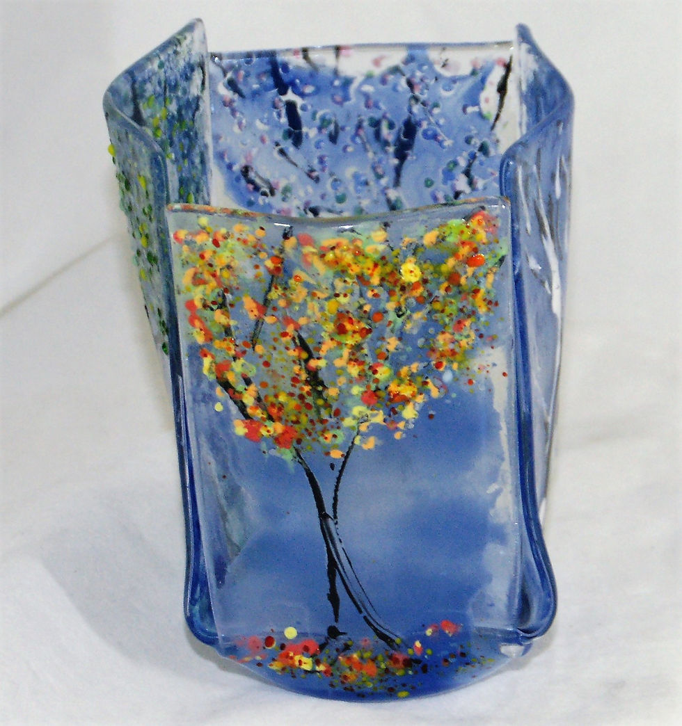 5 Inch Multi-Colored Fused Glass Vase - Fused Colored Frit